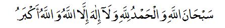 Субханеллахи вел хамду лилляхи веля иляхе иллеллаху веллаху екбер.
